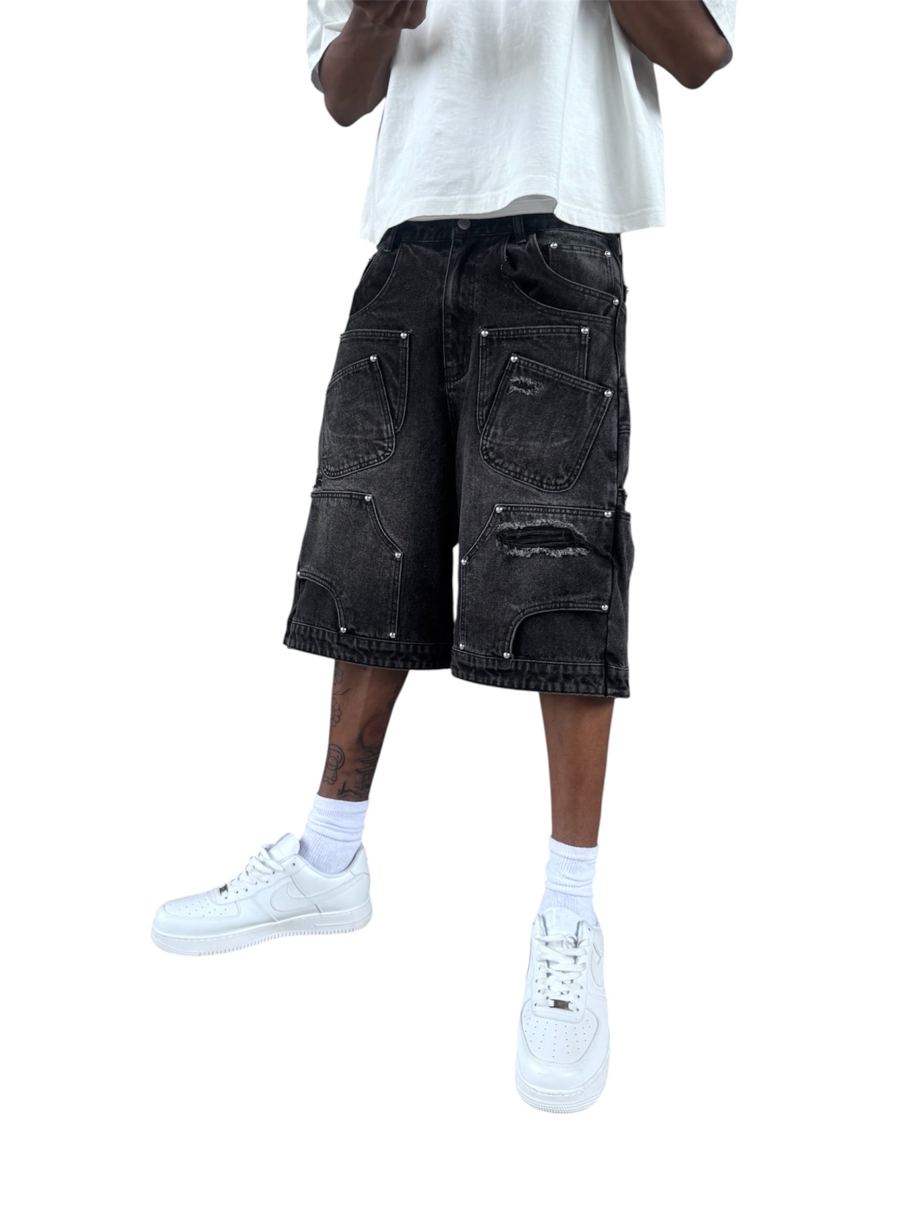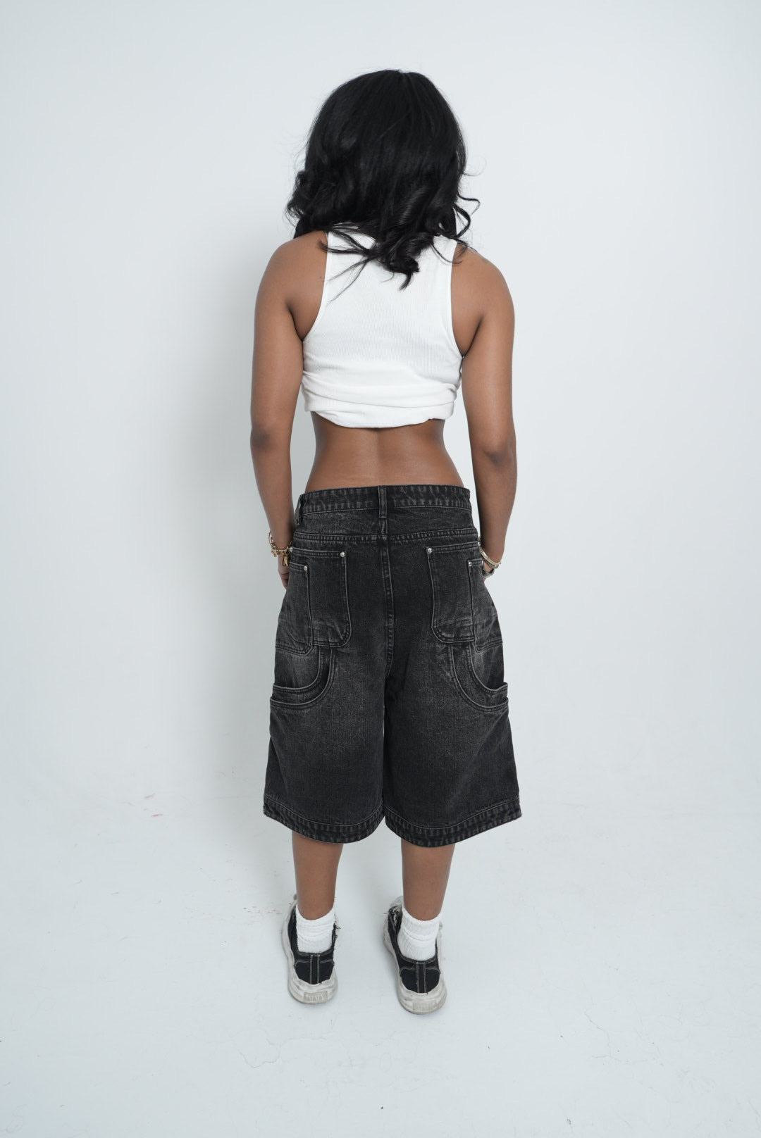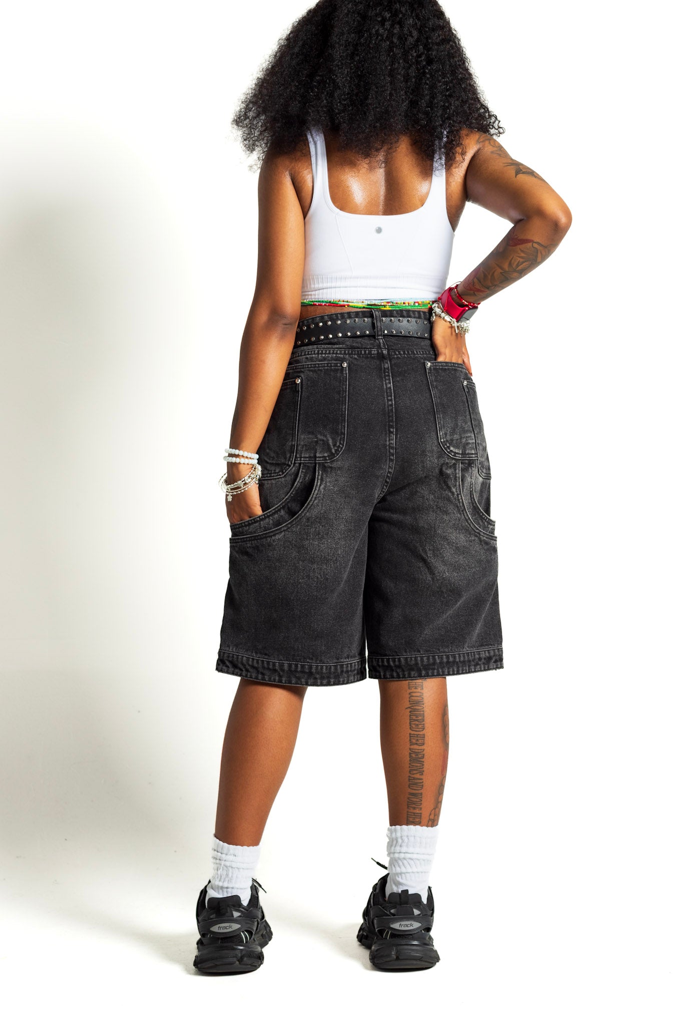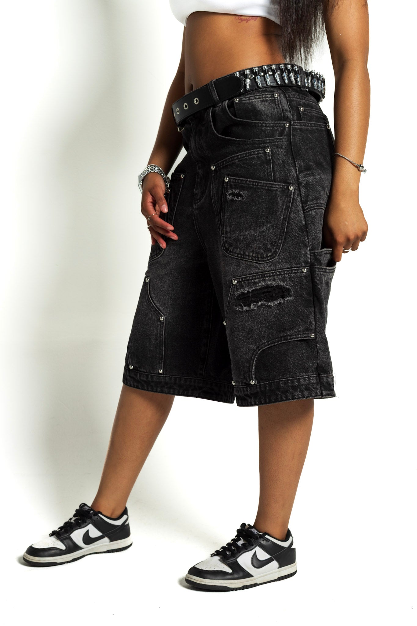 "CRYSTAL POCKET RUNNER" Black Jorts