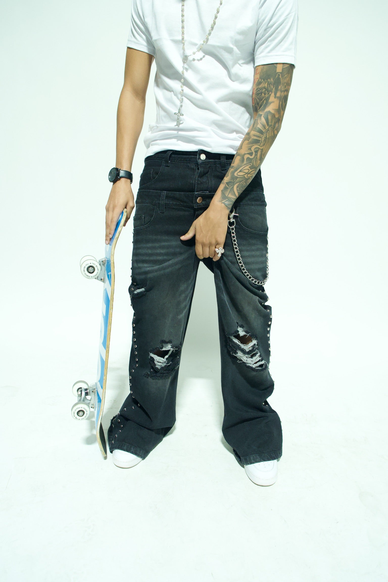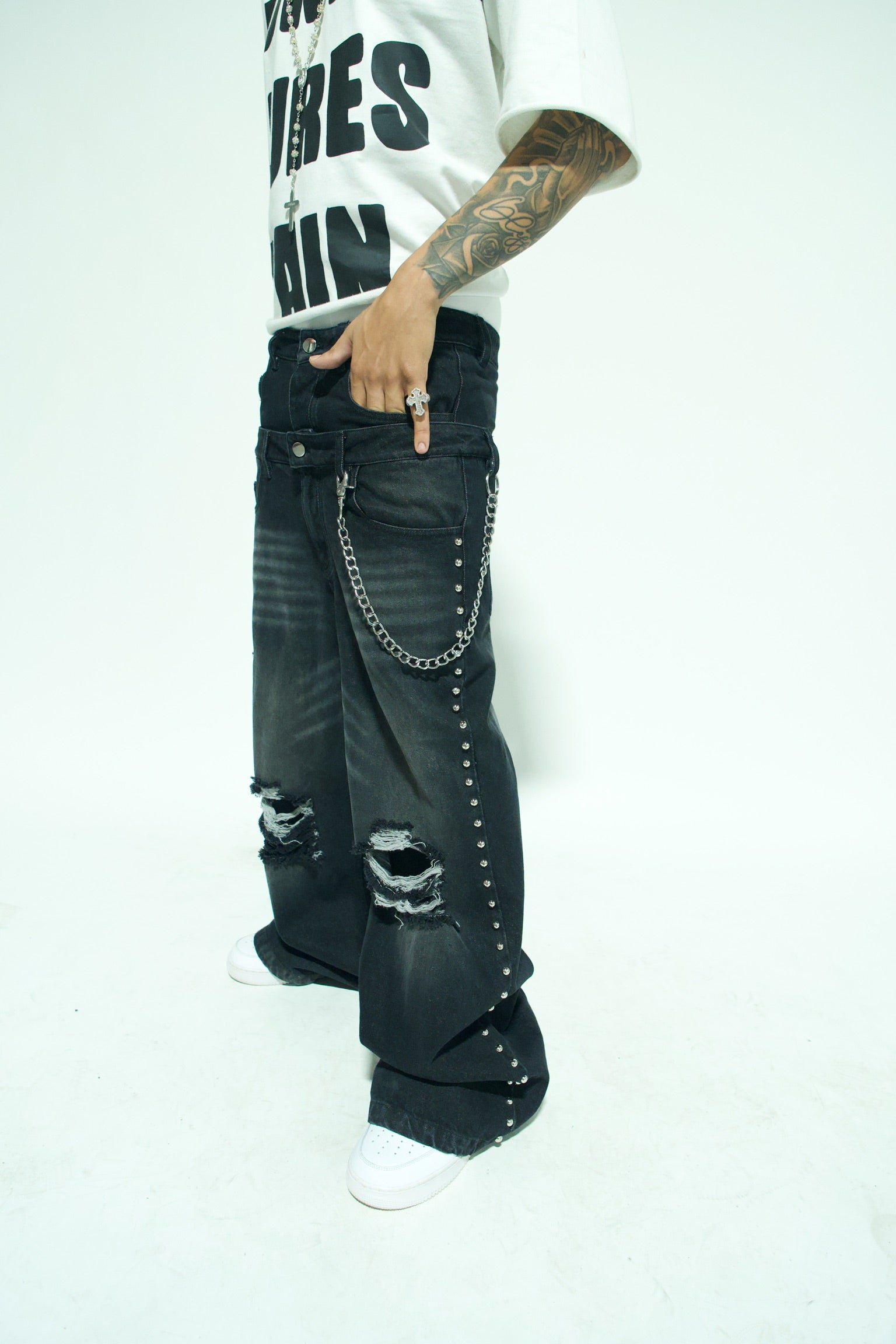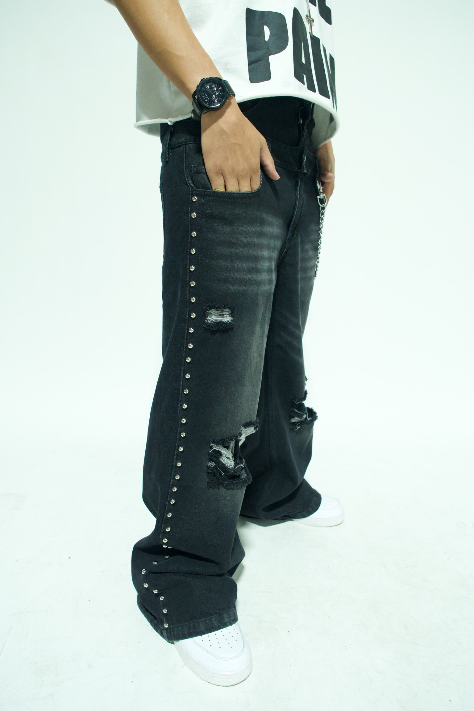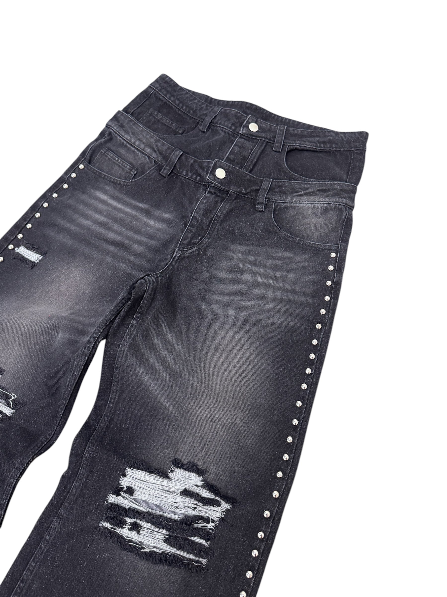 "UA DOUBLE-WAIST" STUD BLACK DENIM