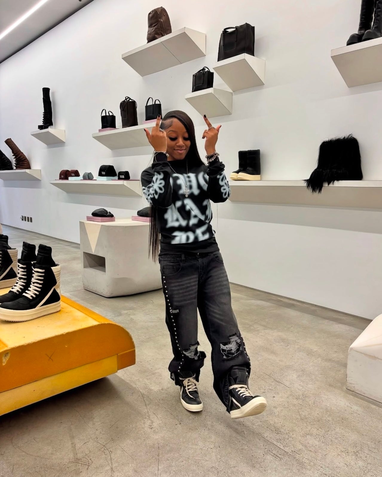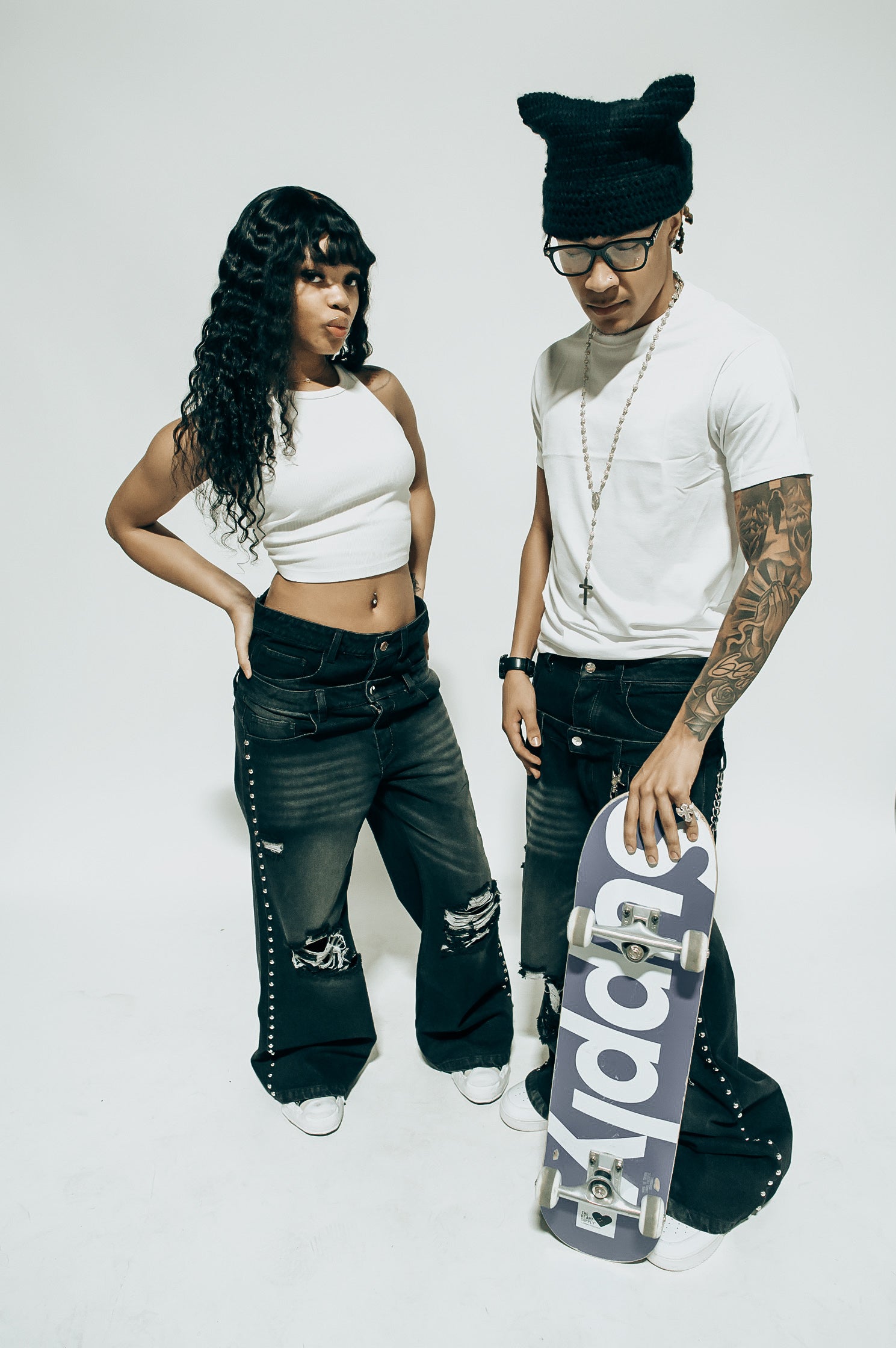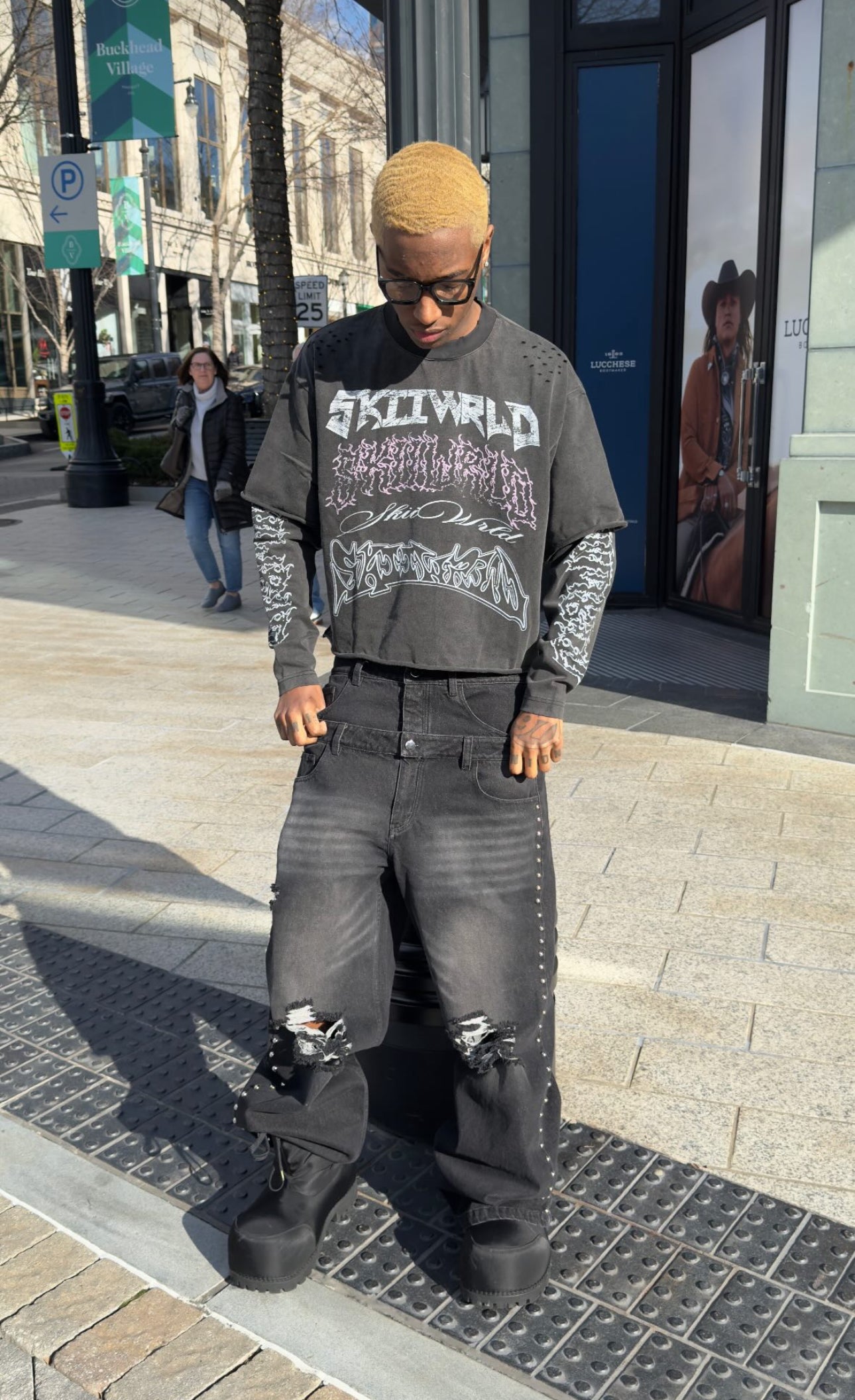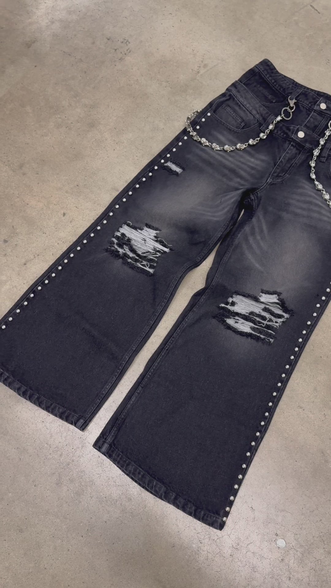 "UA DOUBLE-WAIST" STUD BLACK DENIM